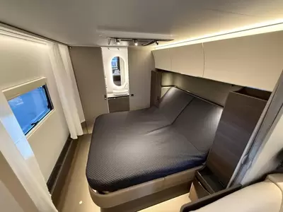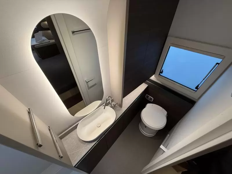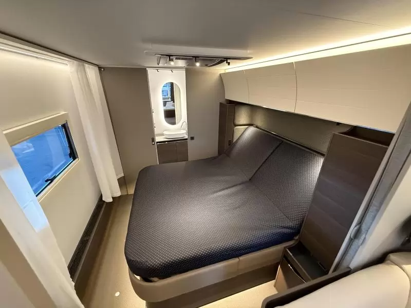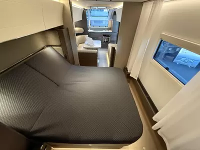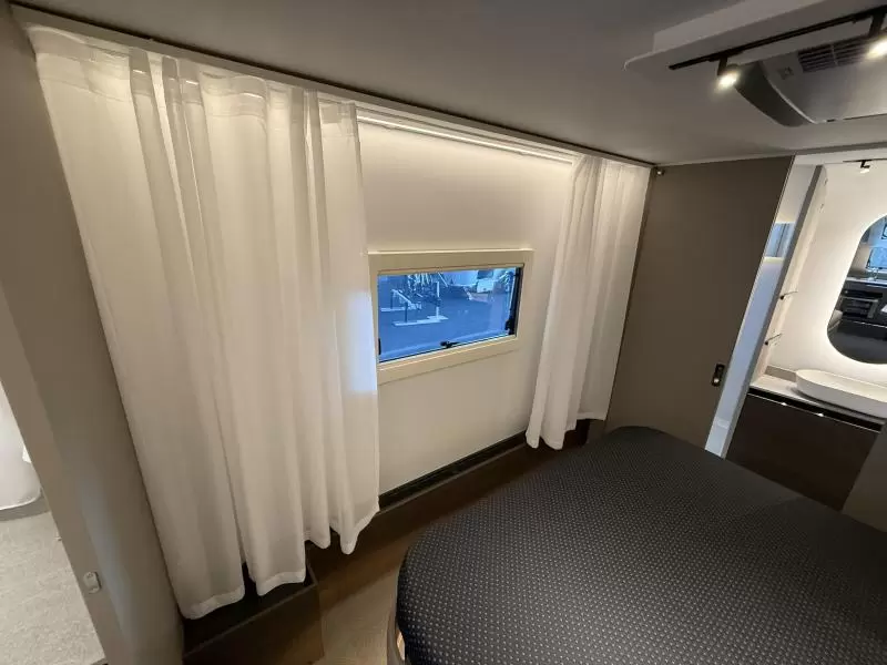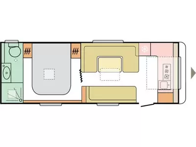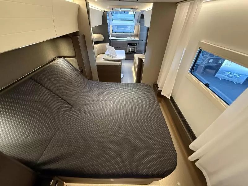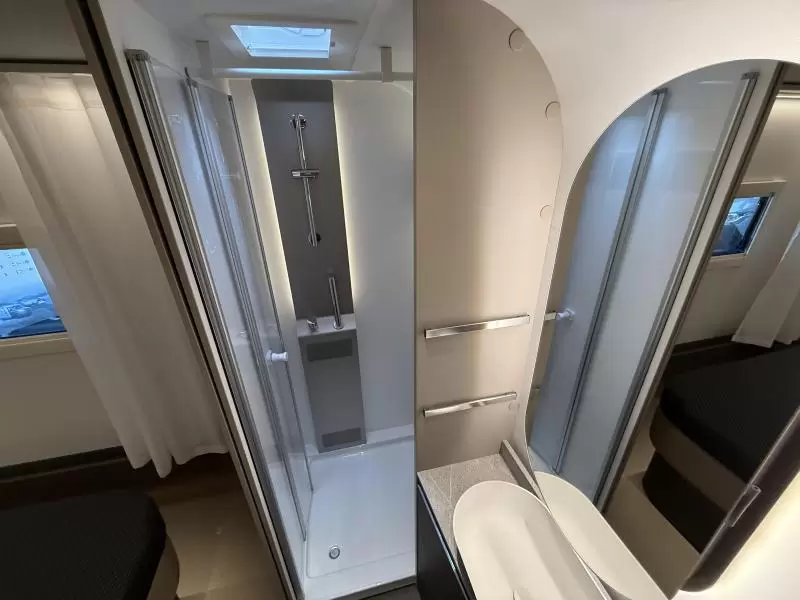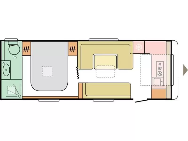 Het vrijstaande queensbed biedt u alle ruimte en is tevens goed toegankelijk voor het in- en uitstappen. De badkamer biedt wasgelegenheid in de vorm van een wastafel. Ook is er een ingebouwd cassettetoilet. Er is bovendien een doucheruimte in de caravan, zodat u van uw eigen douche gebruik kunt maken.