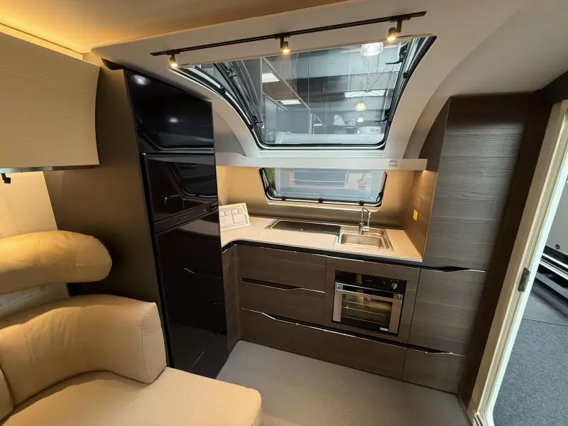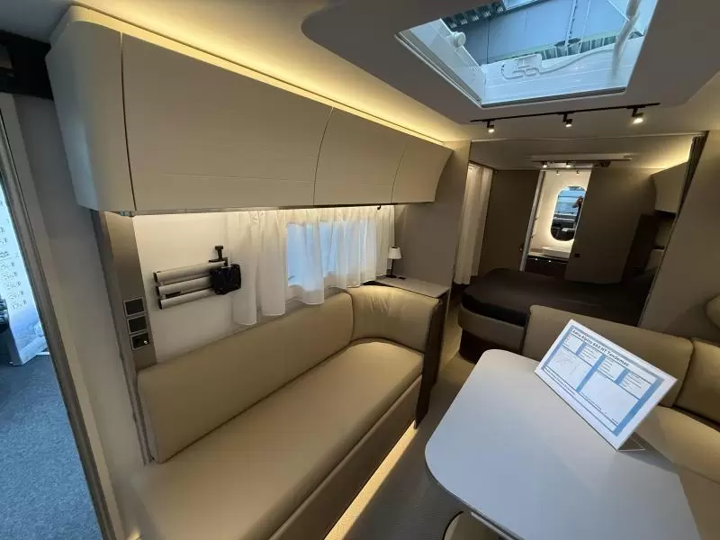 Om met zijn allen gezellig te kunnen eten en drinken beschikt de caravan over een centraal geplaatste middendinette. De luxe en compleet uitgevoerde keuken van deze Adria caravan heeft onder andere een afzuigkap om overtollige warmte en kooklucht af te kunnen voeren en een oven, zodat u broodjes af kunt bakken en ovengerechten kunt maken. Er is een warmwatervoorziening in de vorm van een boiler aanwezig. De extra grote koelkast (167 liter) met vriescompartiment is ruim genoeg voor al uw etenswaren.