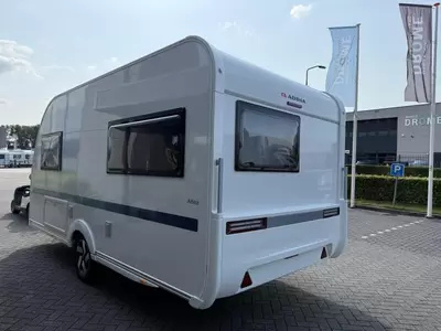 Door de ingebouwde hordeur van deze caravan heeft u veel minder last van vliegen en muggen. Omdat de caravan is uitgerust met een stabilisatorkoppeling, heeft deze een rustiger weggedrag.