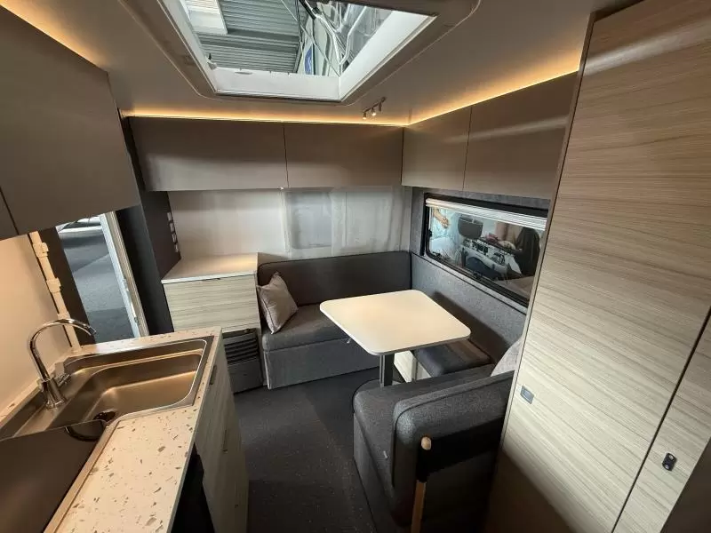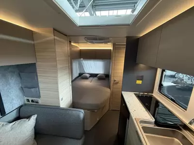 U kunt gezellig plaatsnemen in de praktische standaardzit, die ook kan worden omgebouwd tot slaapplaats. De middenkeuken is zeer compleet uitgevoerd. Een ingebouwde boiler voorziet u van warm water. Om uw etenswaren op te bergen is er een koelkast met vriescompartiment ingebouwd.