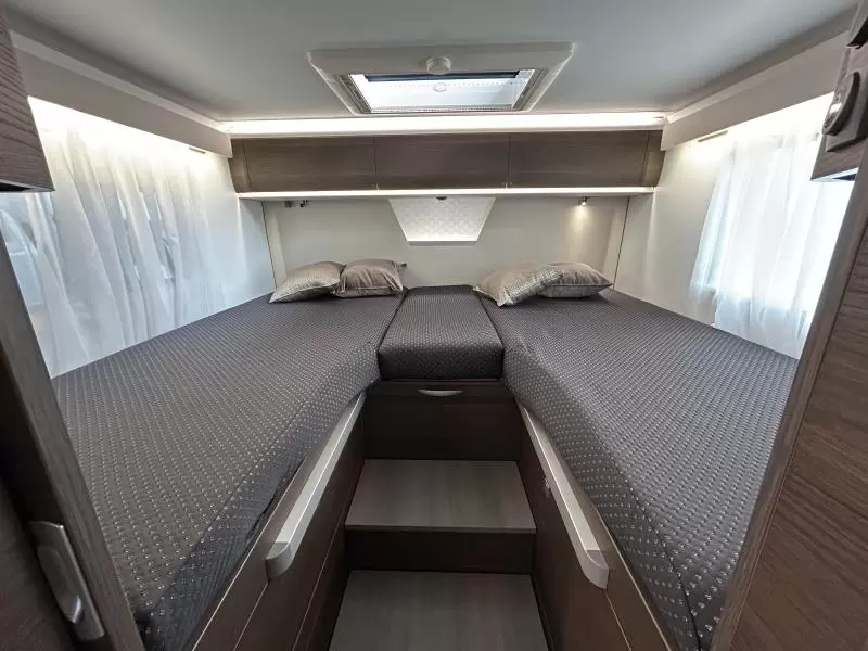 De aparte bedden bieden een makkelijke instap en een slaapgelegenheid voor 2 personen. De badkamer biedt gelegenheid om u aan de wastafel op te frissen en er is tevens een cassettetoilet. Ook is de camper uitgerust met een douchegelegenheid, zodat u zich ook onderweg heerlijk kunt opfrissen.