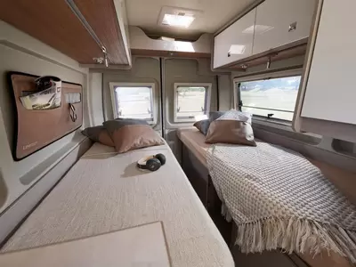 Het slaapgedeelte van de Delphin C621 is doorgaans voorzien van een vast, comfortabel tweepersoonsbed voor de hoofdslaapkamer. Daarnaast kan er een opklapbaar bed of een ombouwzitplaats zijn voor extra slaapmogelijkheden. De camper is ontworpen om tijdens het reizen een rustgevende en ontspannende slaapomgeving te bieden.