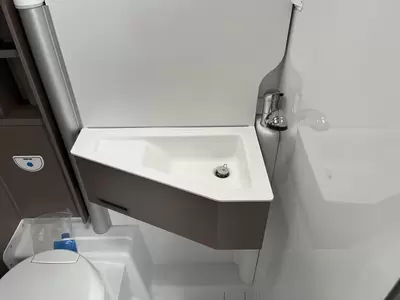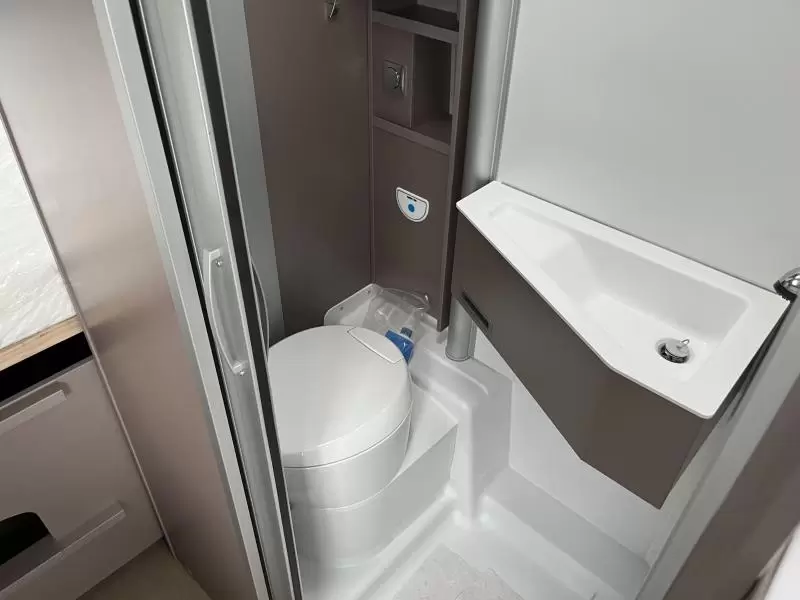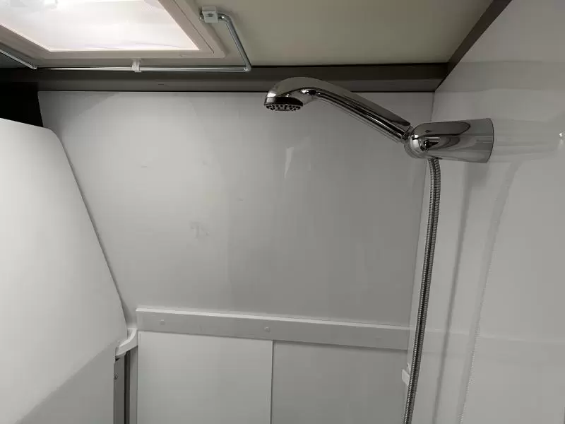 In de comfortabele badkamer van deze camper vindt u behalve een wastafel ook een ingebouwd cassettetoilet. Ook is de camper uitgerust met een douchegelegenheid, zodat u zich ook onderweg heerlijk kunt opfrissen.
