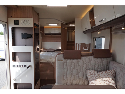 De audio-installatie van deze caravan zorgt voor vele uurtjes onbezorgd luisterplezier. Van vliegen en andere insecten heeft u in deze camper, dankzij de hordeur, geen last. Op de camperplaats aangekomen kunt u de Thüle cassetteluifel in een oogwenk uitdraaien. De u geboden vrijheid en onafhankelijkheid wordt mede bewerkstelligd door de vaste afvalwatertank, de indirecte verlichting, de leeslampjes, de antennevoorbereiding, de televisiebeugel en de buitenlamp.