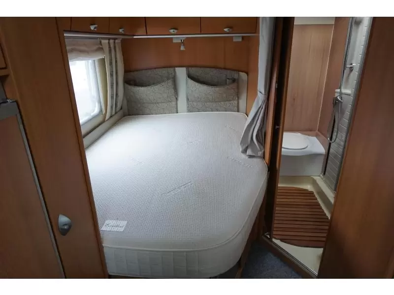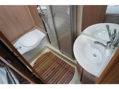 Het ruime, in de lengte geplaatste Franse bed is geschikt voor 2 personen. Om het u aan niets te laten ontbreken, zijn de bedden voorzien van zowel lattenbodems als traagschuimmatrassen. In de badkamer, waar deze camper over beschikt, vindt u een ingebouwd cassettetoilet en een wastafel. Er is bovendien een doucheruimte in de camper, zodat u van uw eigen douche gebruik kunt maken.
