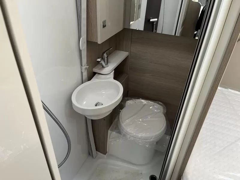 Het ruime, in de lengte geplaatste Franse bed is geschikt voor 2 personen. Aan slaapcomfort zal het u in deze camper, die is voorzien van lattenbodems en traagschuimmatrassen, zeker niet ontbreken. In de badkamer kunt u zich heerlijk opfrissen bij de wastafel. Verder is er ook een cassettetoilet ingebouwd. In de camper kunt u ook douchen. Er bevindt zich een doucheruimte naast het slaapgedeelte.