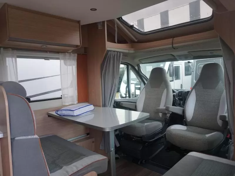De camper is voorzien van een handige L-zit voor een sfeervol samenzijn. De koelkast met vriescompartiment is ruim genoeg voor al uw etenswaren.