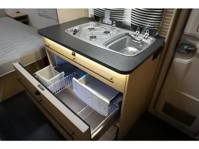 Afkomstig van de 1e eigenaar.Caravelair Antares Titanium 470 Anniversary,Uitrusting betaat o.a. uit:▪ Polyester dak en bodemplaat.▪ Grijze polyester wanden.▪ Disselafdek.▪ Verzwaarde uitdraaisteunen.▪ Lichtmetalen velgen.▪ Sportieve dakreling.▪ Buite...