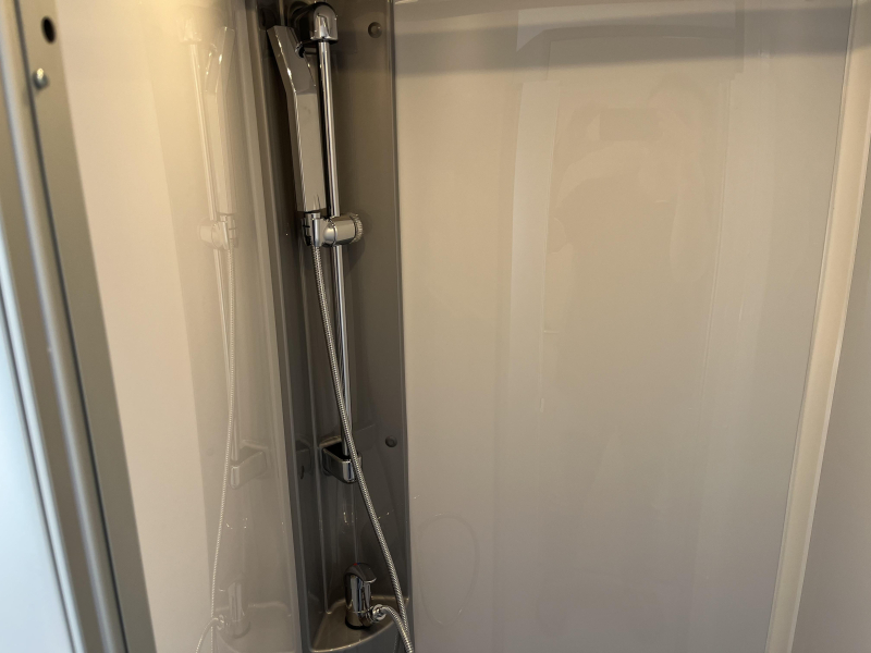 Je kunt je heerlijk opfrissen bij de wastafel in de badkamer. Daar is ook een cassettetoilet ingebouwd. Wilt u zich onderweg opfrissen? Dat kan gezien de camper voorzien is van een douchecabine.
