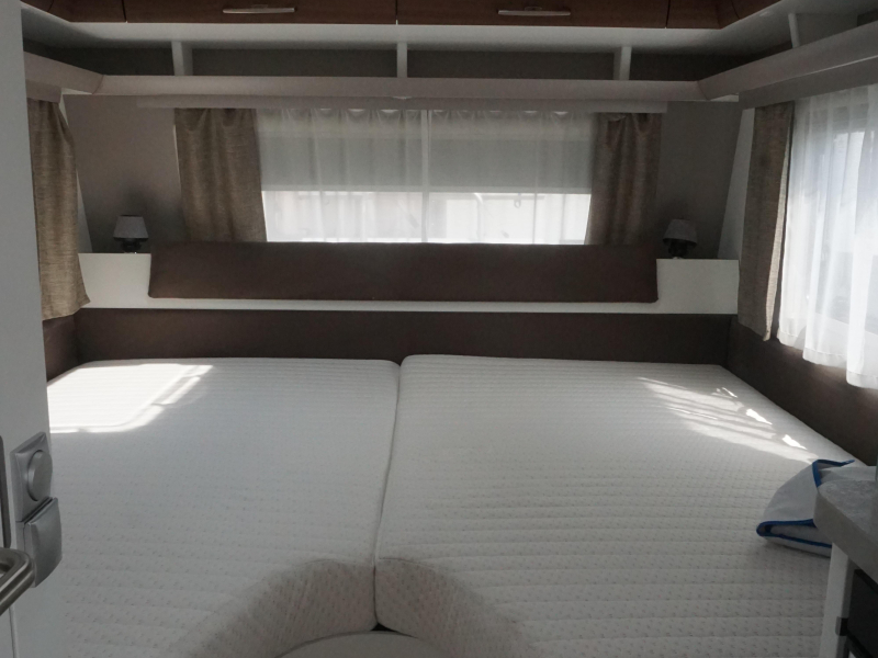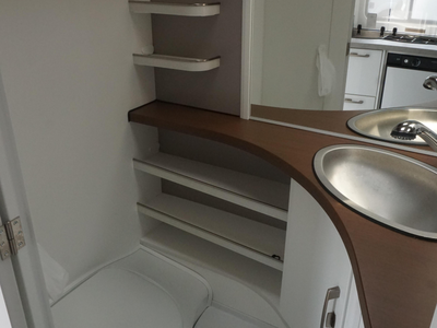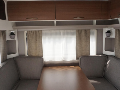 De handige standaardzit biedt niet alleen de nodige ruimte om te zitten, maar kan ook als slaapgelegenheid worden gebruikt. De luxe en compleet uitgevoerde keuken van deze Eriba caravan heeft onder andere een afzuigkap om overtollige warmte en kooklucht af te kunnen voeren. Er is een 5 liter boiler aanwezig, die u van warm water voorziet. De koelkast met vriescompartiment is ruim genoeg voor al uw etenswaren.