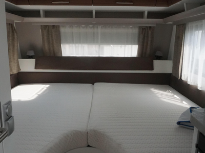 In de 2 aparte bedden in de caravan heeft ieder zijn eigen slaapplek. De badkamer biedt gelegenheid om u aan de wastafel op te frissen en er is tevens een cassettetoilet.