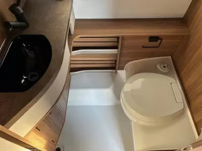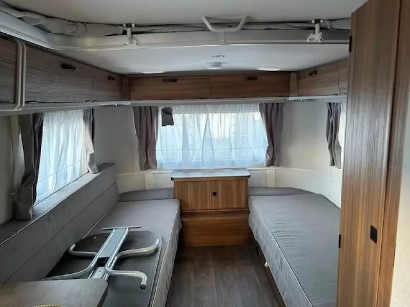 Slapen doet u op de 2 aparte bedden, die borg staan voor extra ruimte en een makkelijke instap. In de badkamer vindt u een wastafel om u op te frissen, alsmede een ingebouwd cassettetoilet.
