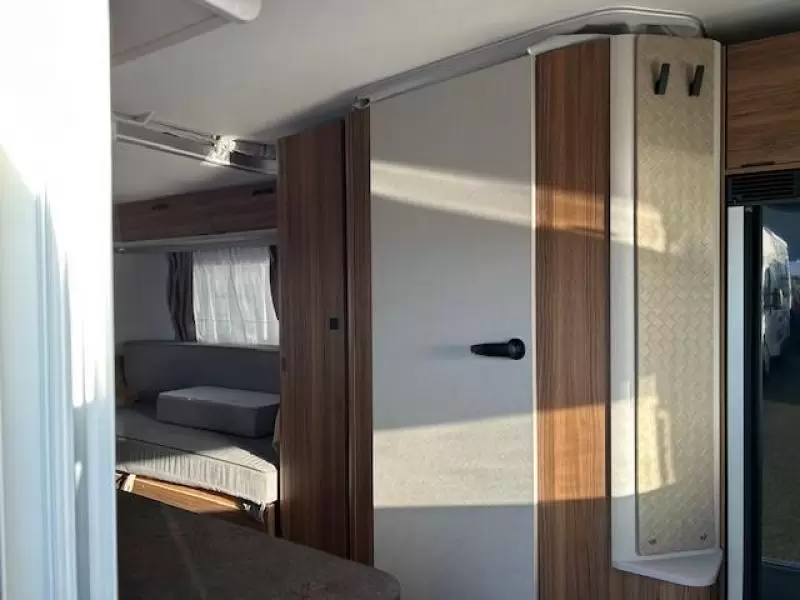 De caravan heeft een hordeur, zodat u in de caravan geen last van muggen en andere insecten heeft. De stabilisatorkoppeling, waar deze caravan mee is uitgerust, zorgt voor een verbetering van het weggedrag van de caravan.