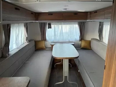 Deze Eriba Touring heeft een doordachte inrichting om prettig mee te kunnen kamperen. De caravan is gebouwd in 2025. Een stevige hagelbui kan het polyester dak van deze Eriba caravan niet deren, het is er prima tegen bestand. Uw bagage kunt u ook van de buitenzijde snel bereiken via het serviceluik.