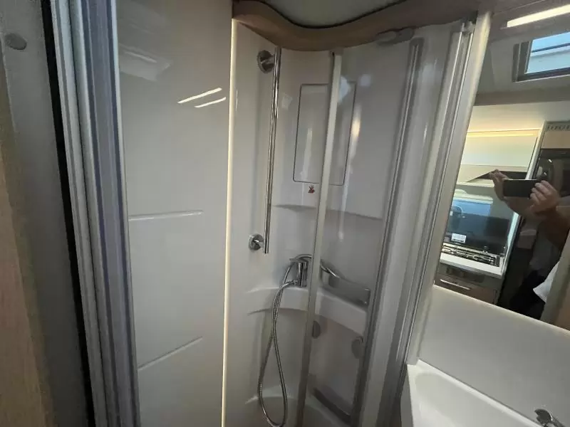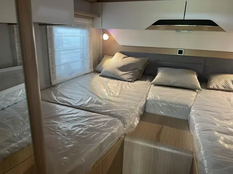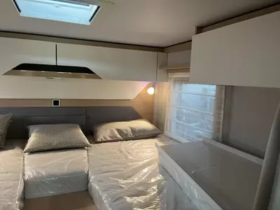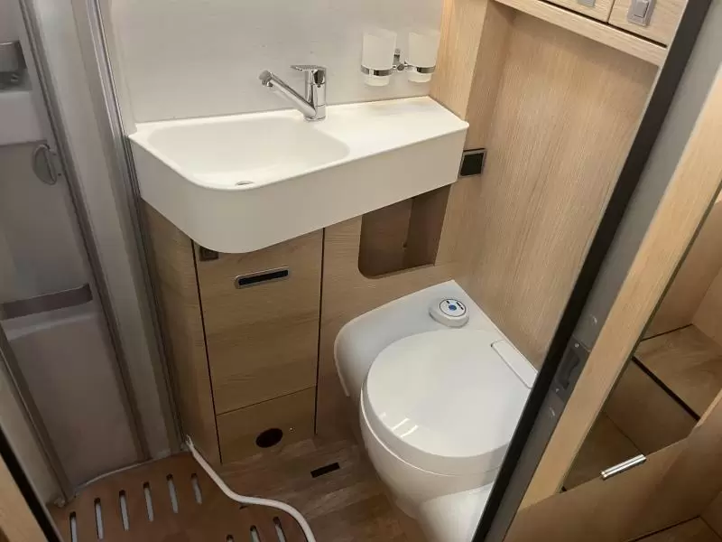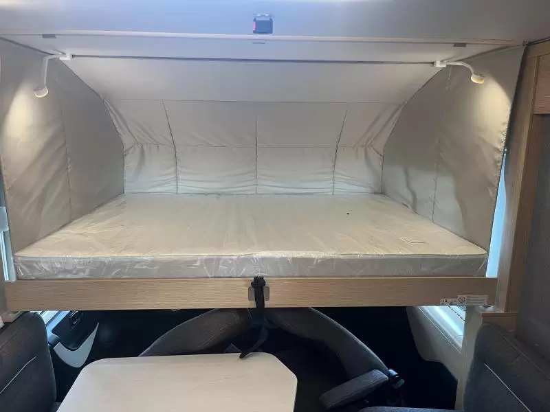 Boven de zitgroep bevindt zich een ruimtebesparend hefbed, waar 2 personen kunnen slapen. De twee aparte bedden waarover de camper beschikt, bieden een gemakkelijke instap. In de badkamer kunt u zich heerlijk opfrissen bij de wastafel. Verder is er ook een cassettetoilet ingebouwd.