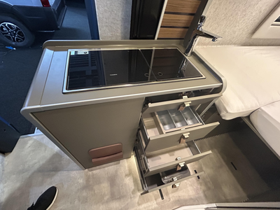 Middels het bovenbed heeft de camper een extra, plaatsbesparende slaapplek. In de 2 aparte bedden heeft ieder zijn eigen slaapplek. Deze camper beschikt over een badkamer. Hierin bevindt zich een wastafel en ingebouwd cassettetoilet. Ook is de camper uitgerust met een douchegelegenheid, zodat u zich ook onderweg heerlijk kunt opfrissen.
