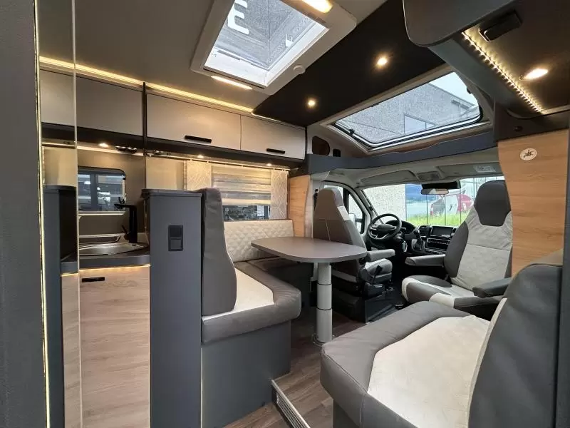 Standaard is deze camper uitgerust met diverse comfort- en veiligheidsfuncties, zoals Climate-control in de cabine, ABS, achteruitrijcamera, DAB+ radio cruisecontrol, draaibare voorstoelen, cabineverduistering, hordeur, GFK dak , Luifel etc