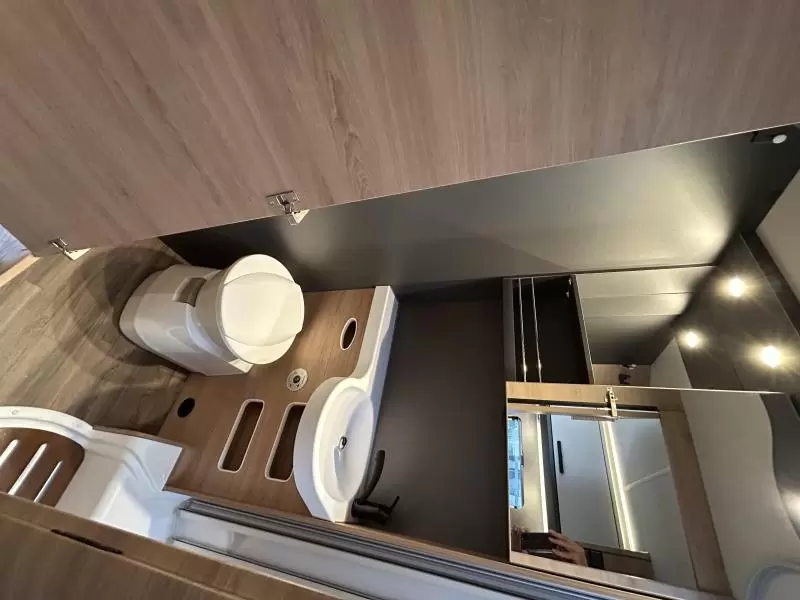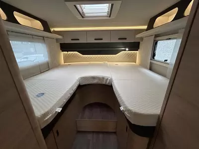 In de 2 aparte bedden heeft ieder zijn eigen slaapplek. Deze camper beschikt over een badkamer. Hierin bevindt zich een wastafel en ingebouwd cassettetoilet. In de camper kunt u ook douchen. Er bevindt zich een doucheruimte naast het slaapgedeelte.