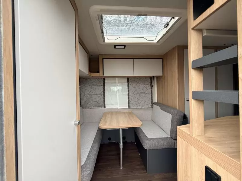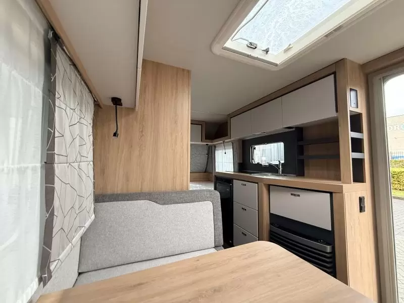 Het grote dakluik zorgt voor veel daglicht in de caravan, ook biedt het een prima ventilatiemogelijkheid. Voor een goede verdeling van de verwarmde lucht is de caravan voorzien van een circulatiesysteem.