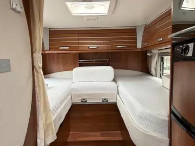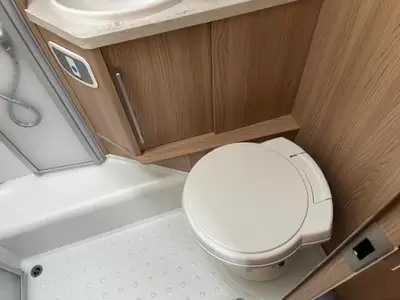 Slapen doet u op de 2 aparte bedden, die borg staan voor extra ruimte en een makkelijke instap. In de comfortabele badkamer van deze camper vindt u behalve een wastafel ook een ingebouwd cassettetoilet. Er is bovendien een doucheruimte in de camper, zodat u van uw eigen douche gebruik kunt maken.
