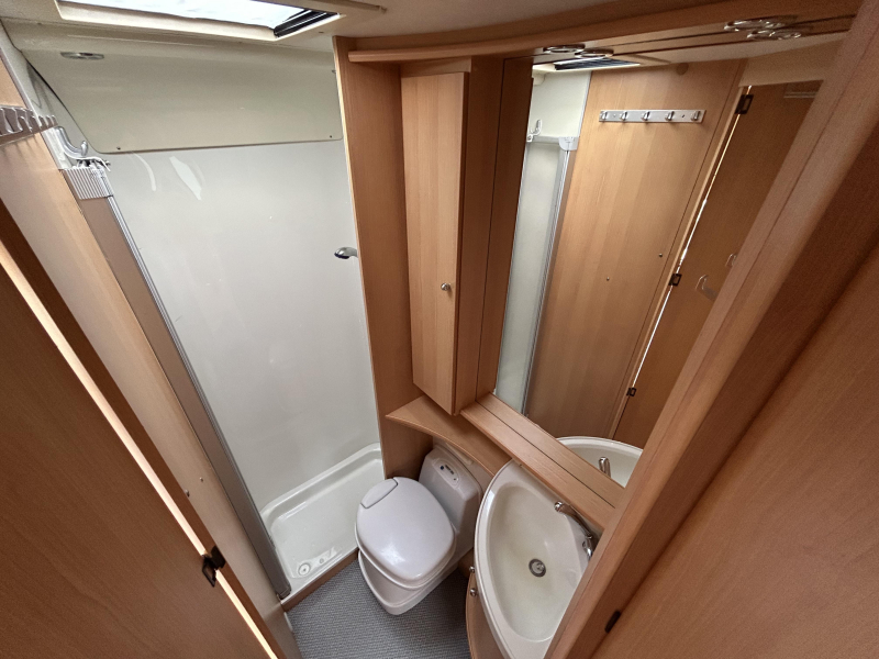 De camper is uitgerust met een Frans bed, een in de lengte geplaatst tweepersoons bed. Behalve een cassettetoilet heeft de badkamer ook een wastafel, waar u zich heerlijk op kunt frissen. Er is bovendien een doucheruimte in de camper, zodat u van uw eigen douche gebruik kunt maken.