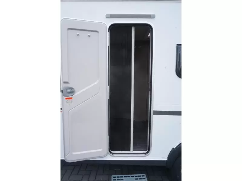 U zult in deze caravan, dankzij de ingebouwde hordeur, minder last van insecten hebben. De stabilisatorkoppeling zorgt voor een merkbare verbetering van het weggedrag van deze caravan.