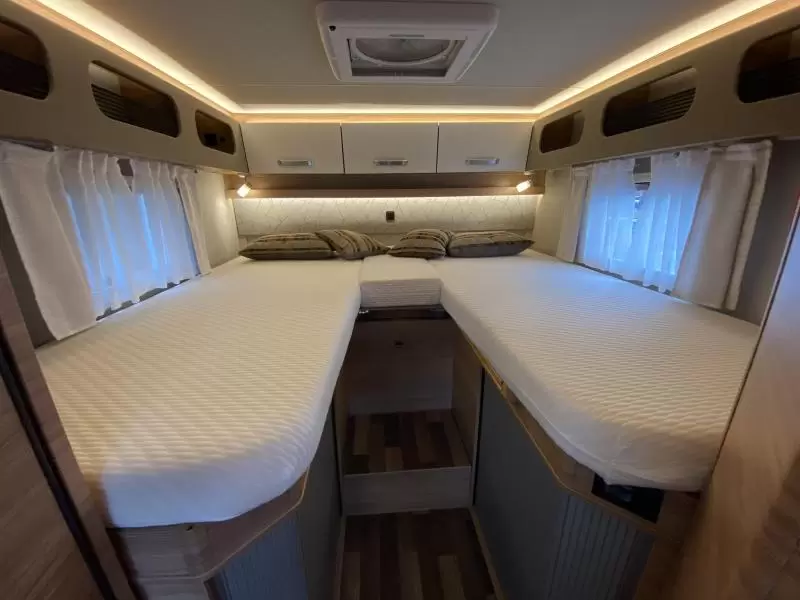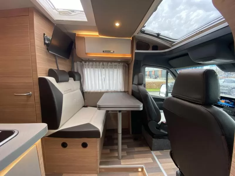 De camper is uitgerust met draaibare stoelen, cruise control, een achteruitrijcamera, een navigatiesysteem, luchtvering en cabineverduistering. De aandrijving komt voor rekening van een duurzame dieselmotor met een automatische versnelling.