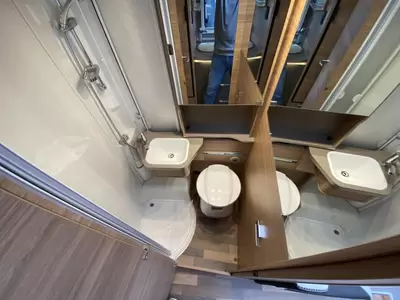De aparte bedden bieden een makkelijke instap en een slaapgelegenheid voor 2 personen. U kunt zich heerlijk opfrissen bij de wastafel in de badkamer. Daar is ook een cassettetoilet ingebouwd. Wilt u zich onderweg opfrissen? Dat kan gezien de camper voorzien is van een douchecabine.