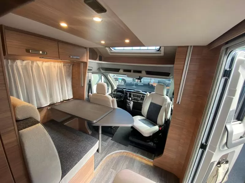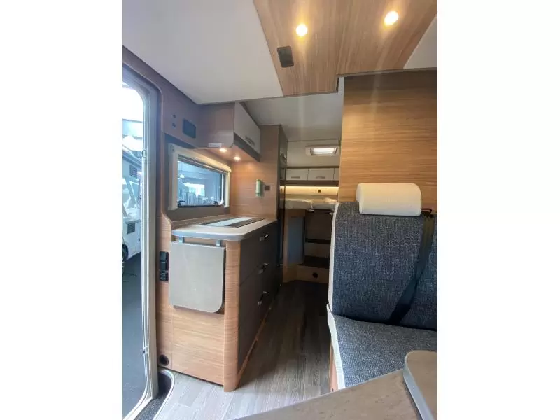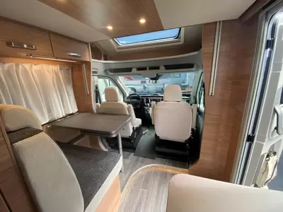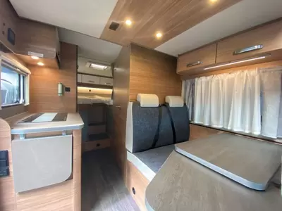 Centraal in de camper bevindt zich de gezellige middendinette. De complete keuken is in het midden van de camper geplaatst. De boiler, die in de camper is ingebouwd, voorziet snel van warm water. De koelkast met vriesvak biedt voldoende ruimte voor heel jouw voorraad.