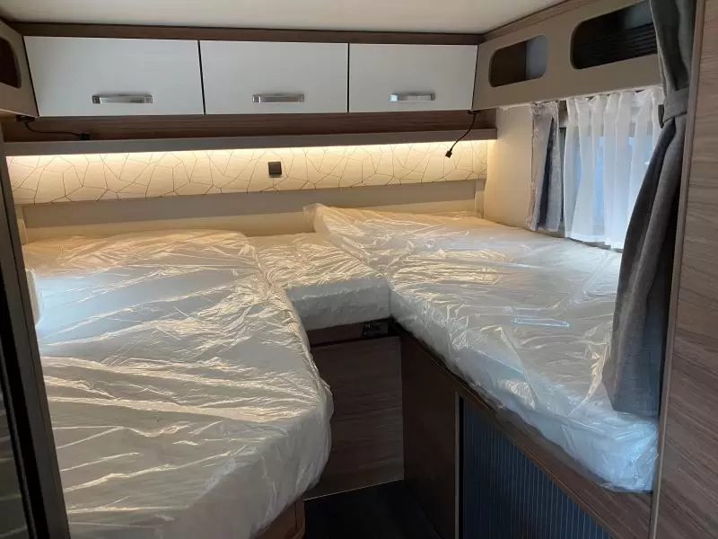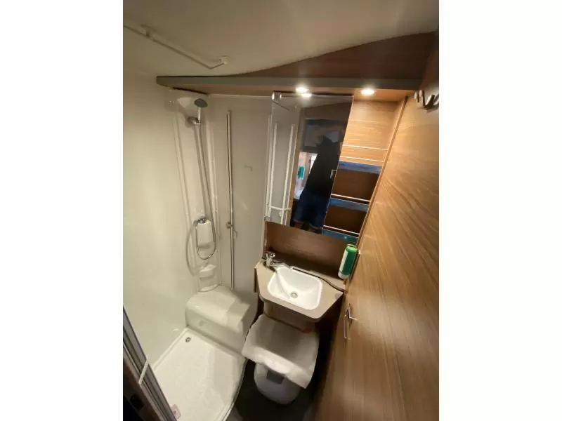Je bespaart enorm veel ruimte dankzij het hefbed, waarin 2 personen een slaapplaats vinden. In de 2 aparte bedden heeft ieder zijn eigen slaapplek. Je kunt je heerlijk opfrissen bij de wastafel in de badkamer. Daar is ook een cassettetoilet ingebouwd. Er is bovendien een doucheruimte in de camper, zodat jij van jouw eigen douche gebruik kunt maken.