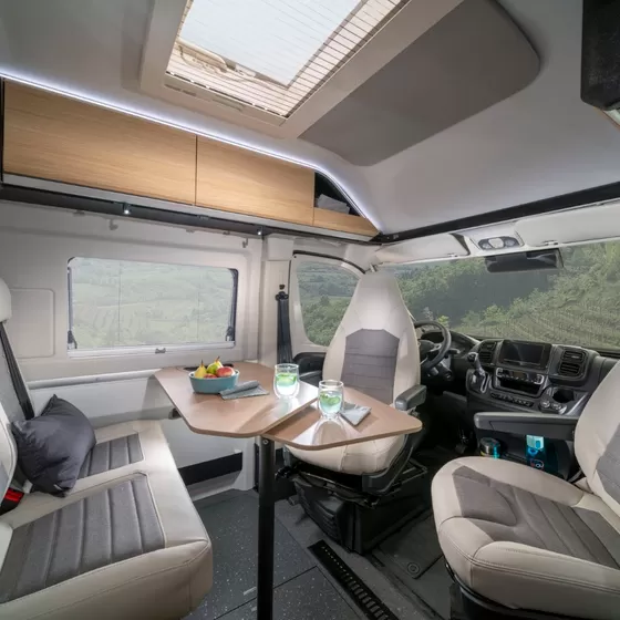 Ontworpen voor het perfecte thuis-gevoel. Een gebruiksvriendelijke en comfortabele buscamper, beïnvloed door eersteklas autostyling en een nieuw modern design.