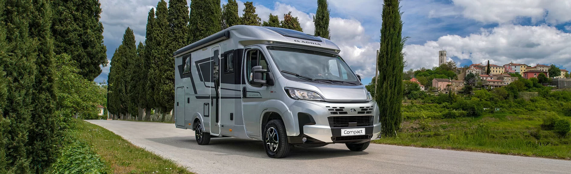 Stijlvol, slank en wendbaar. De Adria compact half integraal camper is slechts 212 cm breed, maar verrassend ruim. Een onverslaanbare combinatie van stijl, comfort en functionaliteit.
