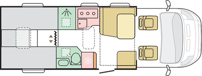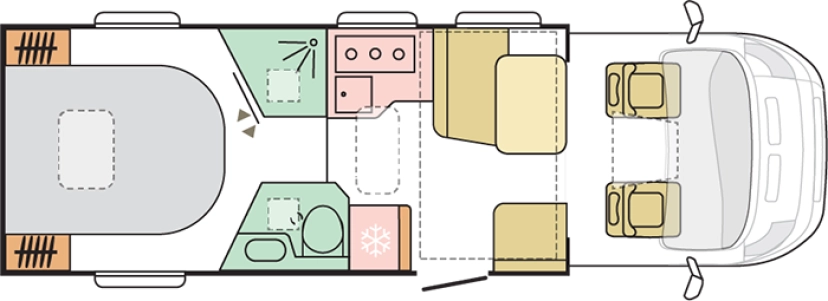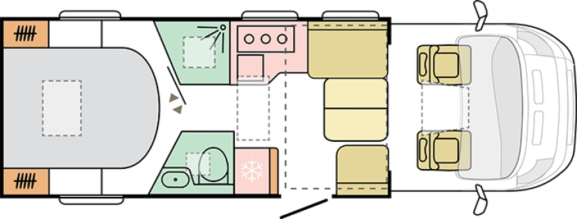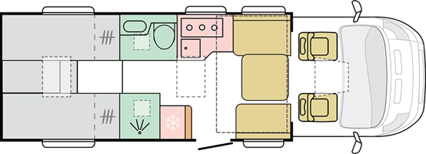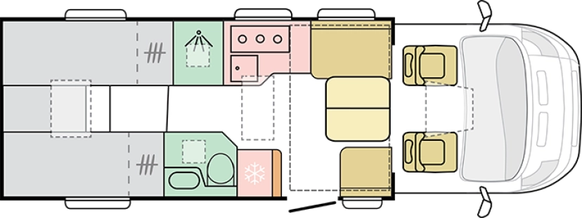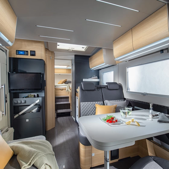 In de moderne leefruimtes met L-zit of face-to-face zit kun je heerlijk ontspannen of genieten van de maaltijd. Met de verschillende indelingen – allemaal voorzien van een verstelbare dinette tafel – vind je altijd de juiste zitgroep!