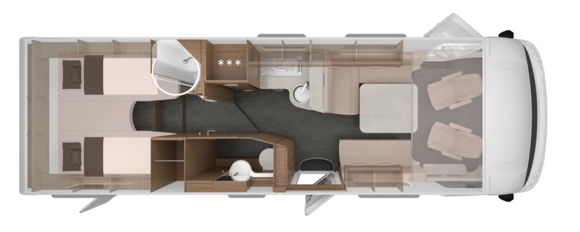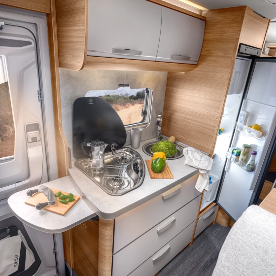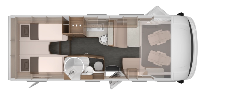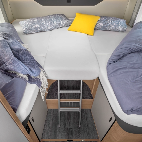 Een open ruimteconcept waarin je het ene hoogtepunt na het andere ziet. Stijlvol, ruim, sfeervol – dit model klopt in elk detail. Door het geïntegreerde hefbed voorin is deze camper ideaal voor vakanties met het hele gezin.