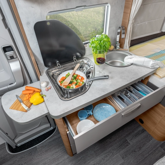 Dit is hoe een echte Knaus camper eruit ziet, met elk hoekje het handschrift van de beste interieurdesigners. Hij schittert met opvallende design highlights en overtuigt met de beste ambachtskunst. Van de elegante dak uitbouw tot de moderne vloer.