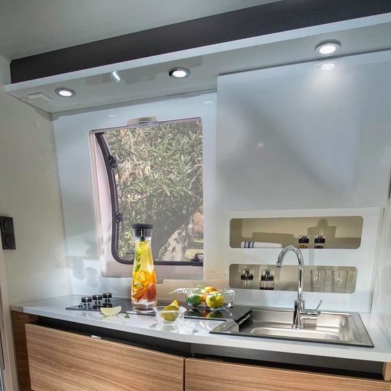 Bereid de lekkerste maaltijden in de praktisch ingerichte keuken met georganiseerde werk- en opslagruimte. Een drie pits gasfornuis met geïntegreerde spoelbak en apparatuur van hoge kwaliteit maken de compacte keukens verrassend compleet.