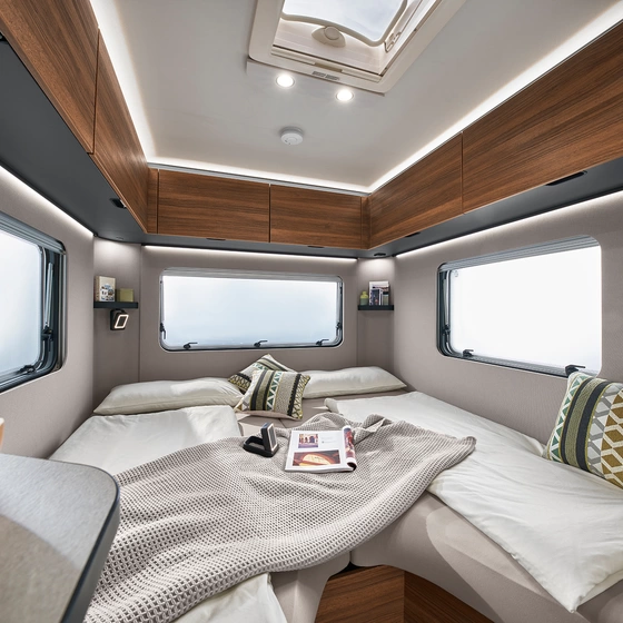 Dwars bed, enkele bedden, Frans bed of zelfs stapelbedden, het is allemaal mogelijk in de Eriba Novaline. Welk model je ook kiest, je bent verzekerd van een comfortabele nachtrust. Zo kun jij tijdens je vakantie alvast dromen over je volgende vakantie.