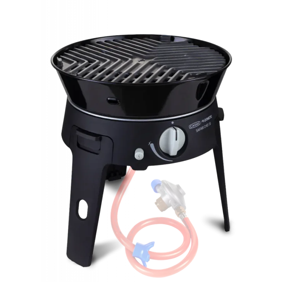 De Safari Chef 30 is een compacte, veelzijdige gasbarbecue, perfect voor onderweg en op vakantie. Met een gewicht van slechts 4,5 kg en maar liefst vier verschillende kookoppervlakken – een pandrager, BBQ rooster, bakplaat en een deksel / soeppan – biedt deze barbecue eindeloze mogelijkheden voor buiten koken.